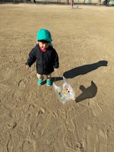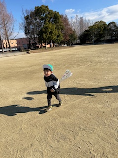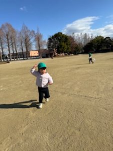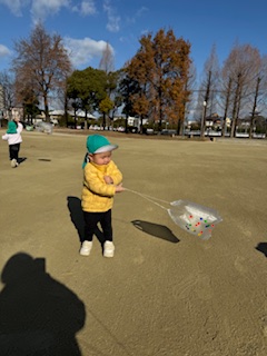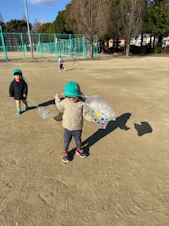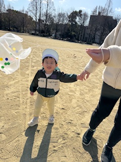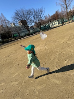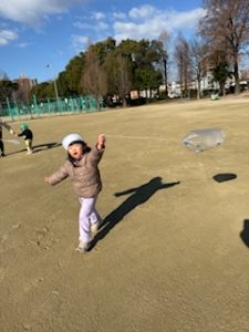 凧あげの凧を作り保育園の前の広~いグラウンドで凧あげをしました!