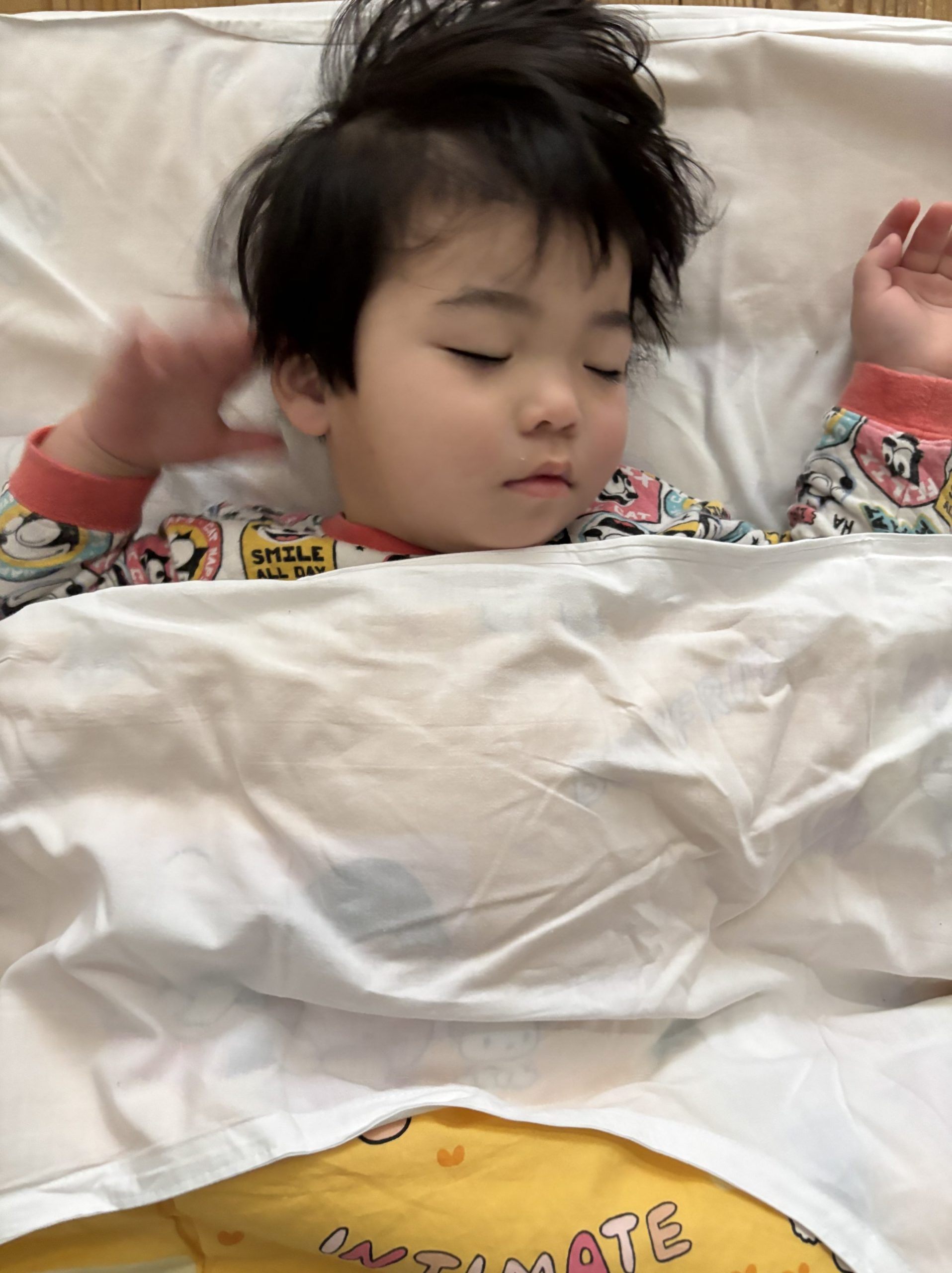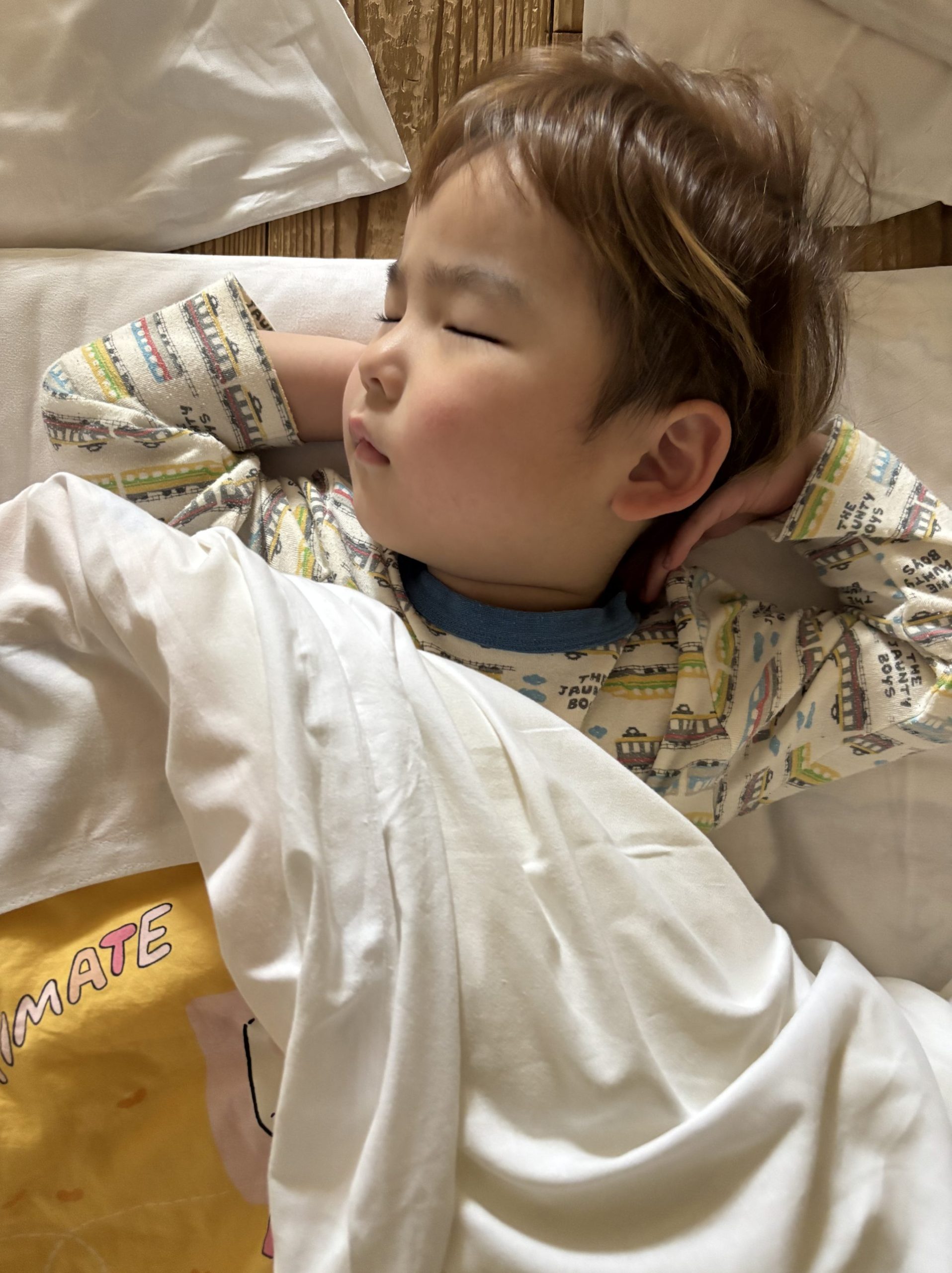 パジャマに着替えてシンボルマールがついたそれぞれのお布団で眠ります🌙