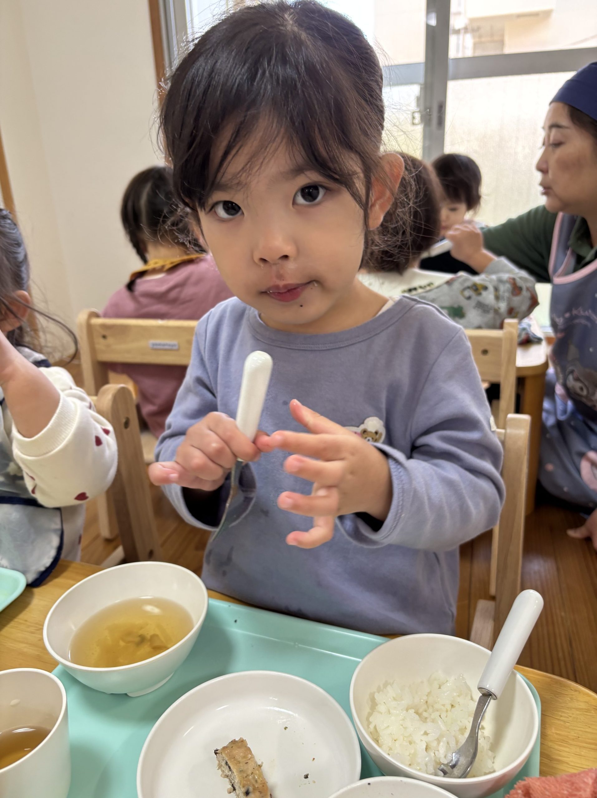 今日は毎日楽しみにしてくれている給食の様子をご紹介します🍚🥄