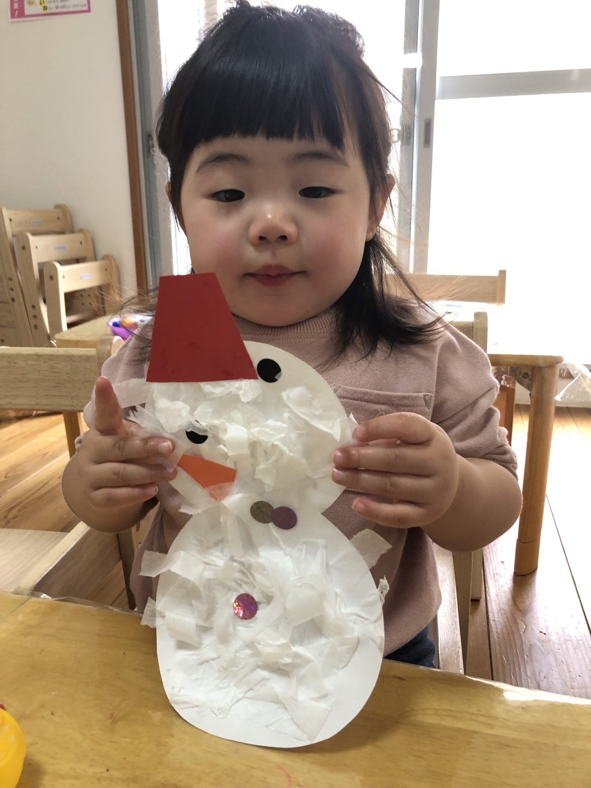 可愛い雪だるま⛄️と手袋🧤が出来上がりましたよ。
