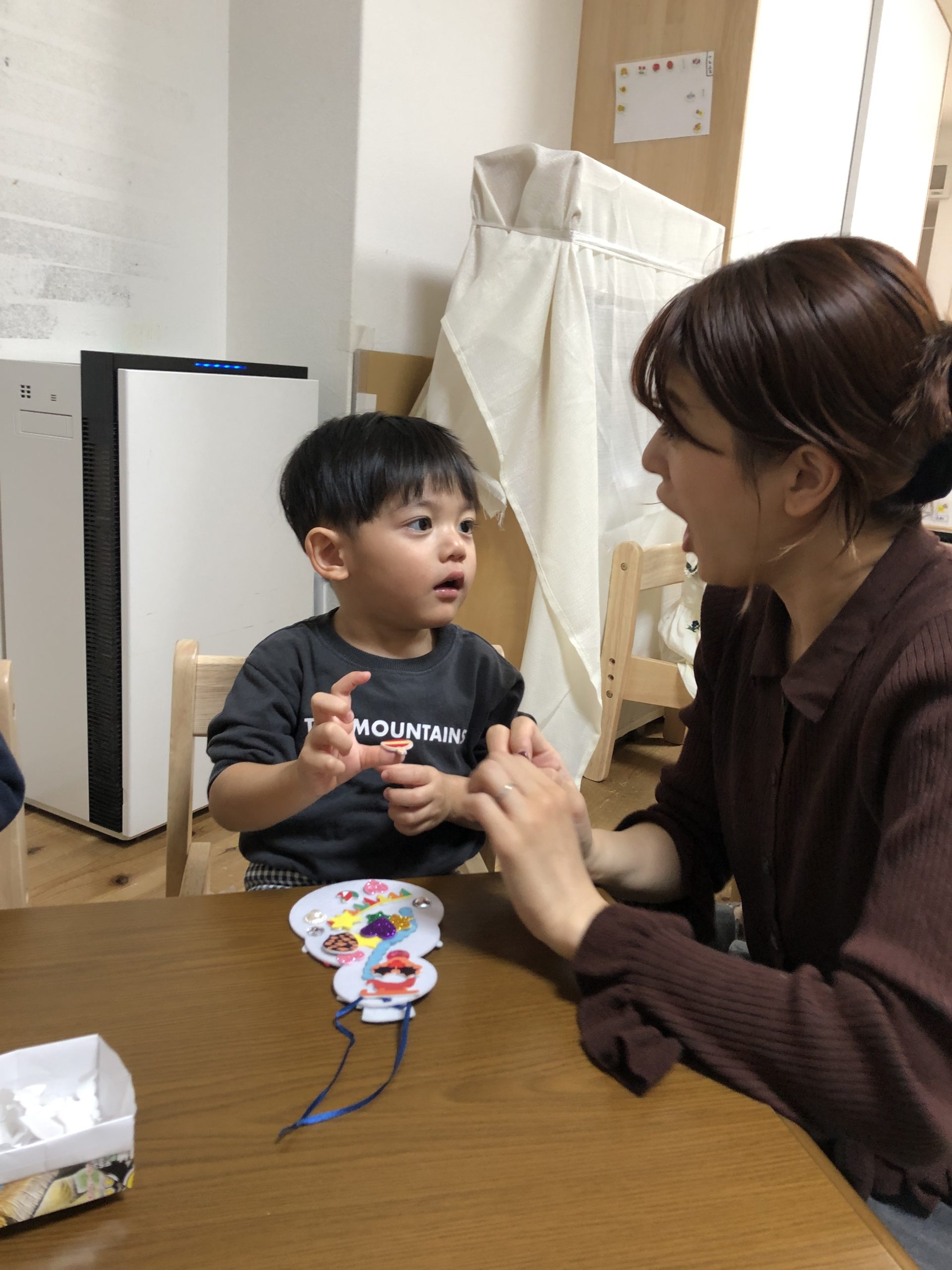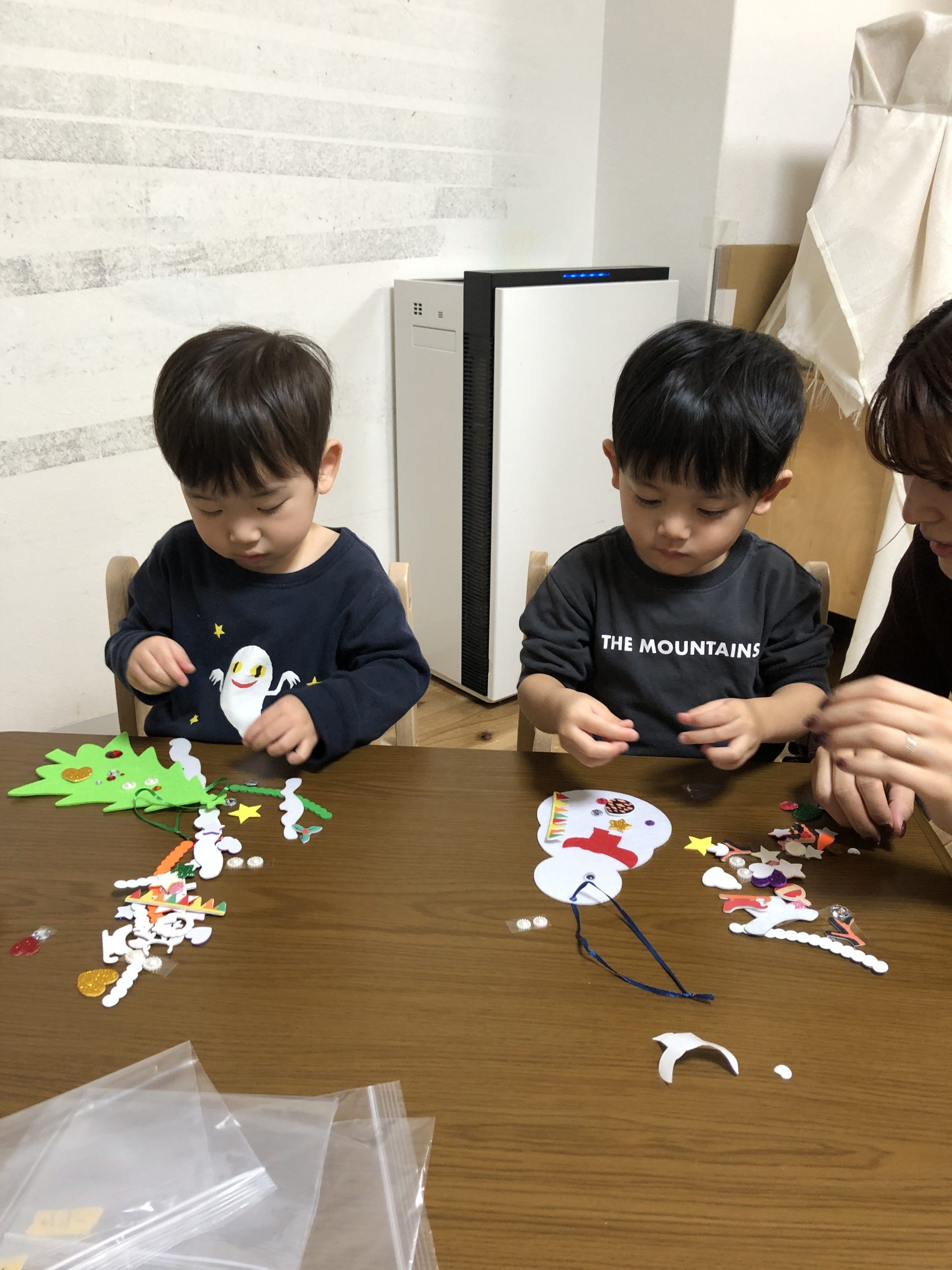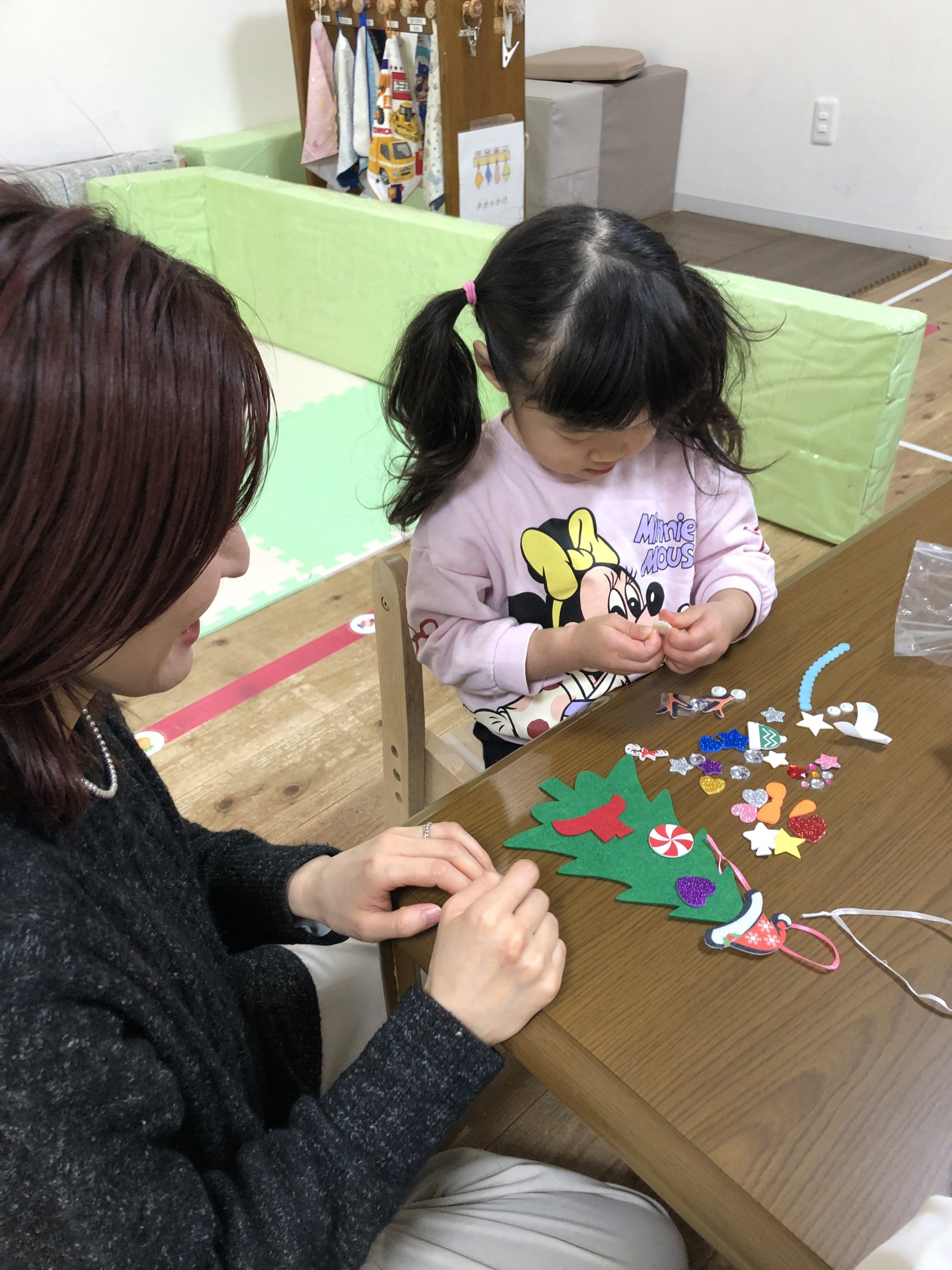 少し小さいシールだったのですが、みんな指先を上手に使いシールを剥がしツリーや雪だるまにシールを貼り一人ひとりの個性がでる素敵な作品が出来上がりました✨