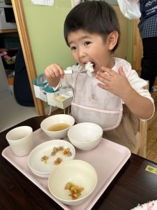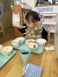 1歳児のお友だちも大きなお口をあけてパクッ❣️