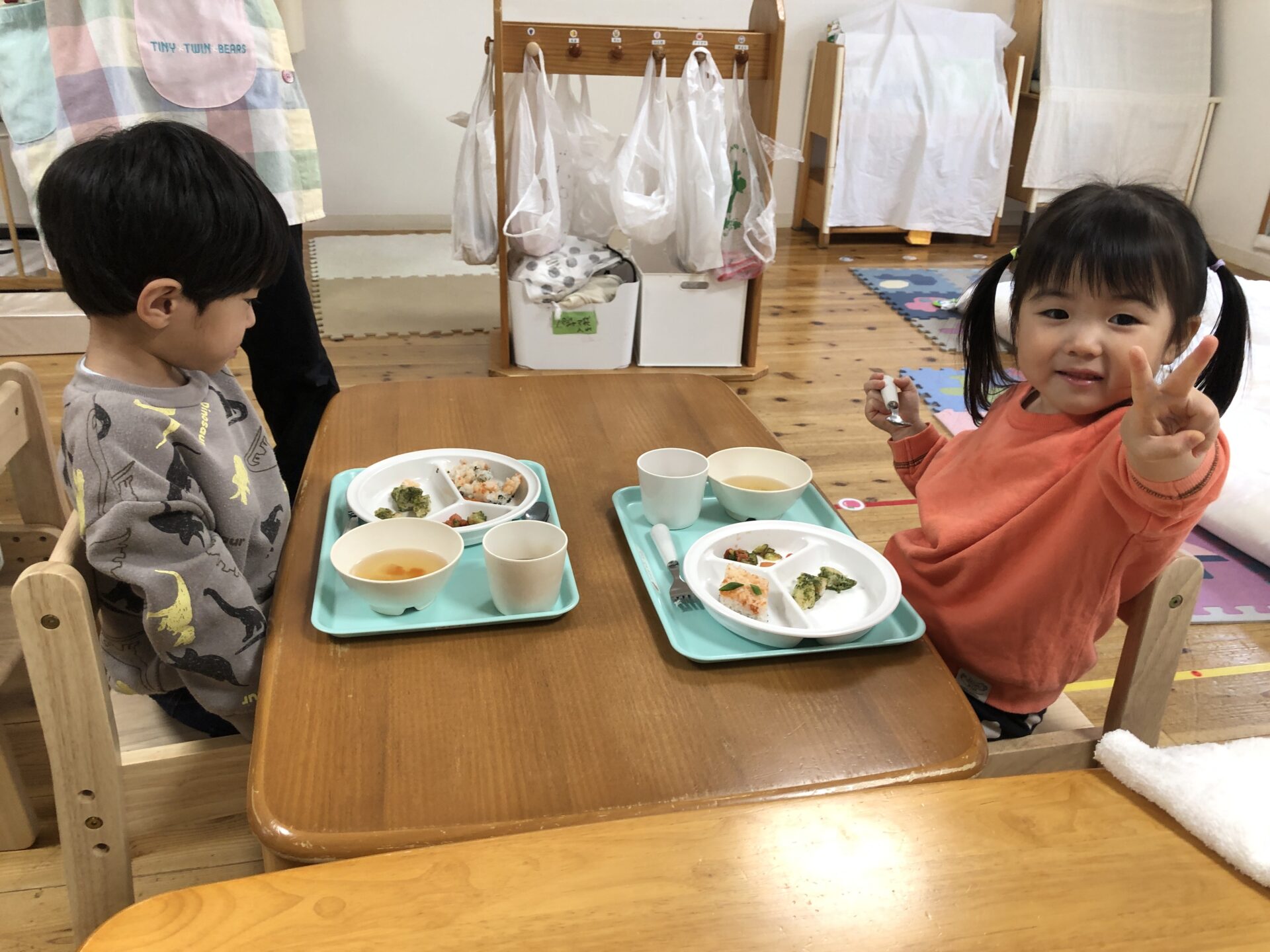 子どもたちはお花の形に型抜きされたにんじん🥕を大事そうに食べていましたよ😊