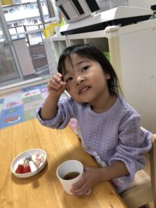 おやつのイチゴと、ひなあられもパクパクおかわりもしていました🍓