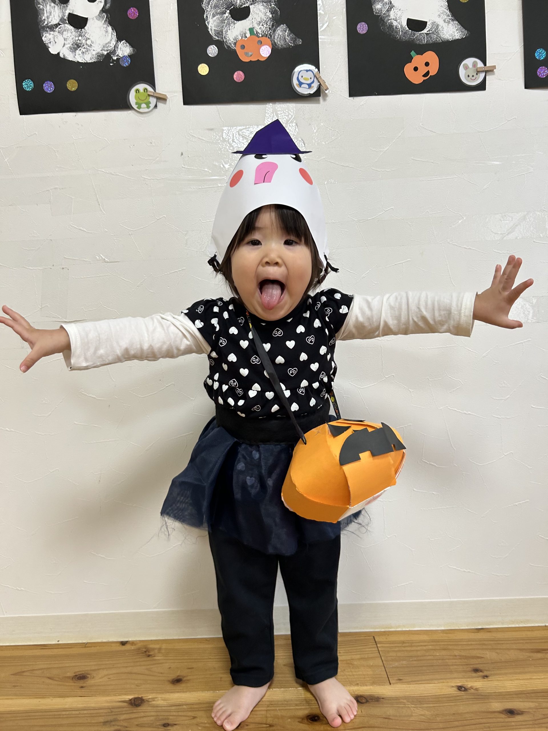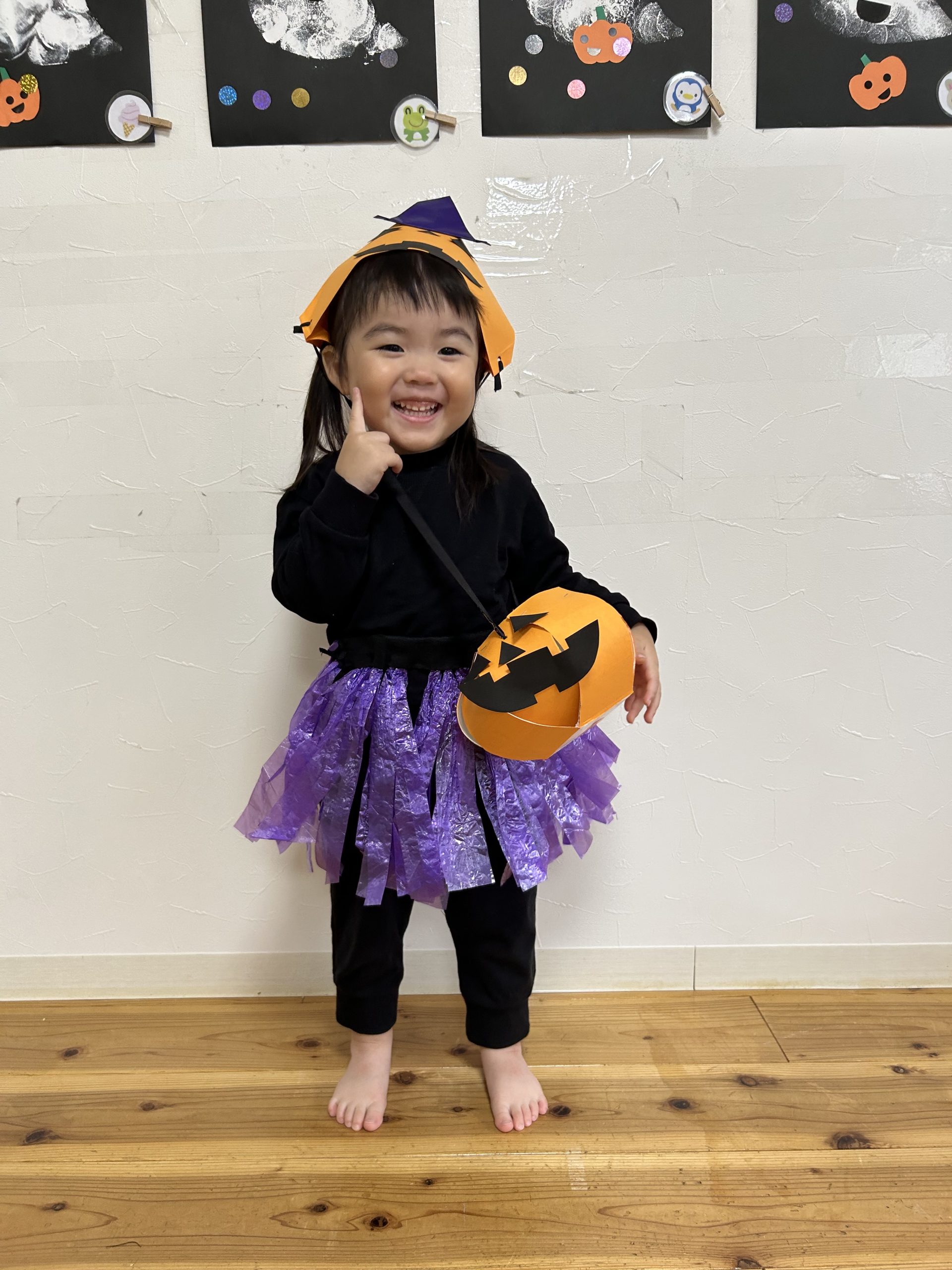 仮装して、かぼちゃのカバンを持って行き、お菓子を入れてもらい、嬉しそうな子どもたちでした🎃