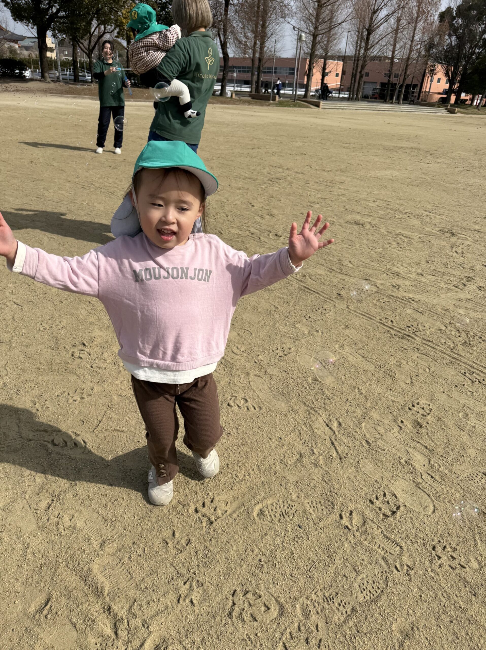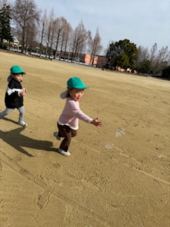 みんな元気にしゃぼん玉を追いかけて楽しみました😊