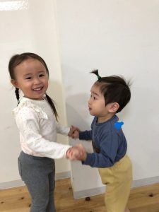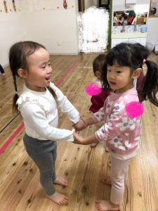 今回はこずえ先生の手作りのタンバリンを叩いて挨拶をして楽しんでいました😊